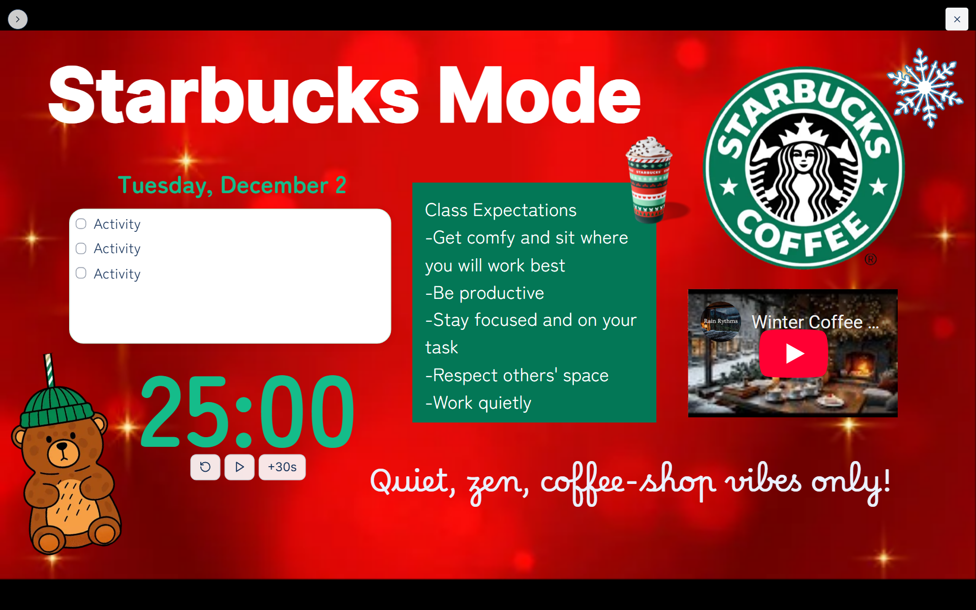Relaxed, cheerful holiday ambiance to help everyone stay focused and productive.