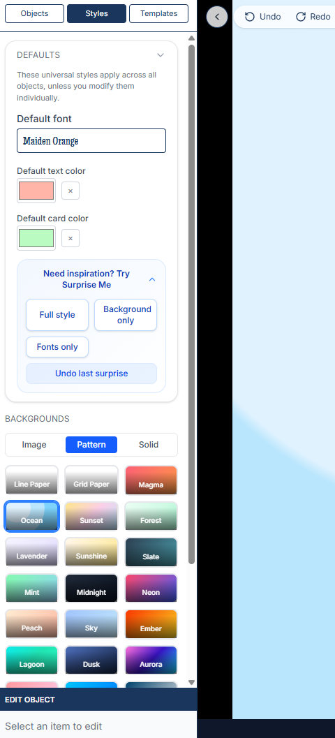 New default themes that look polished out of the box. We redesigned the style panel with: