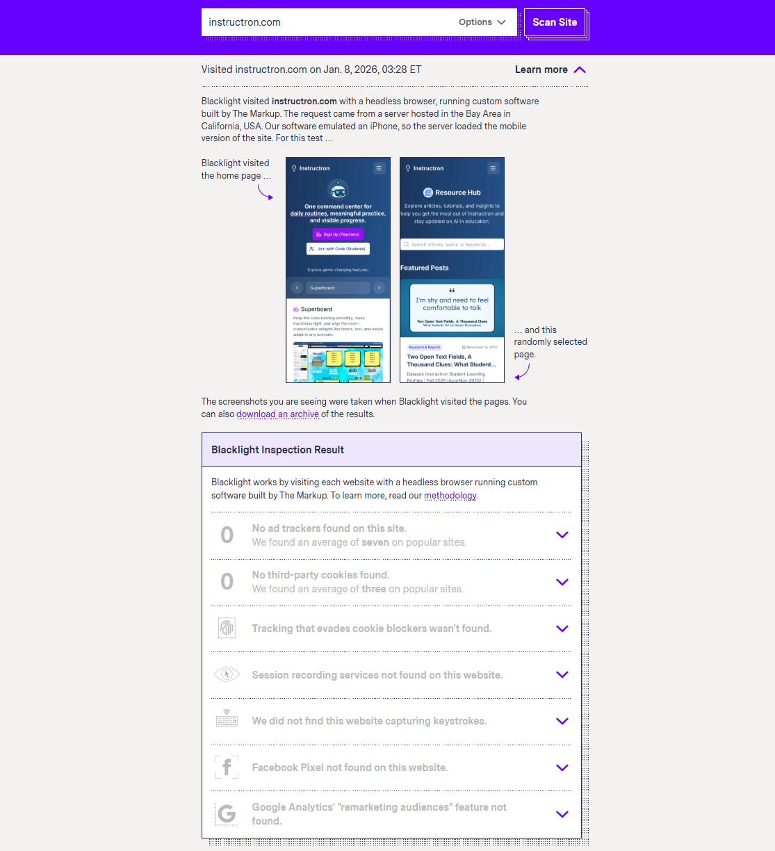 We built Instructron to support learning, not advertising. We don’t sell student data or teacher data, and we don’t run third‑party ad pixels.
